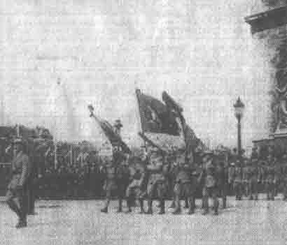 | Siegesparade portugiesischer Truppen 1919 in Paris. Ehemalige Gefangene aus Breesen nahmen daran teil. Foto: Garcez | zwischen 18 und 30 Jahren. Portugal spekulierte auf deutsche Kolonialgebiete, die direkt an die portugiesischen Besitzungen Angola und Mocambique angrenzten, |
